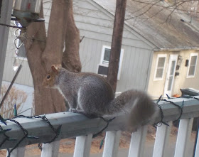 Ahh! Look at the little squirrel on my front porch. Isn't he cute?