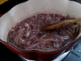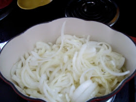 Yesterday I made some French Onion soup. It is a favorite of Fred's and mine but we do not have it very often. We will usually have it when we go out to eat at certain places that make it well, like Steak Loft. It is a long cooking process but it is worth it because it can be a labor of love. If you love this soup and you love someone who loves this soup, take a day to make it for them. It will show them a tiny bit of how you feel. Plus, you gotta love each other cause you are gonna REEK of onions afterward. :)