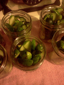 Yesterday, in the blazing heat...I made and canned pickles. Bread and butter pickle spears to be exact. I have a couple friends that would like to have the recipe. It is nothing that was handed down. It was something I had found a couple years ago. I had to give a canning demonstration and I wanted a couple things that I canned for people to sample. This one came out wonderfully as a pickle chip. The plate of pickles disappeared. I was so proud! So here I am..sharing another one from the vault. I hope you enjoy it.