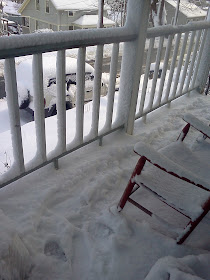Front porch. The kids were out during the storm and musted up the nice snow. It was a bitch to clean up cause their footprints got frozen on the wood of the porch. Nat cleaned the whole thing off. Hubs and I did out front for the cars.